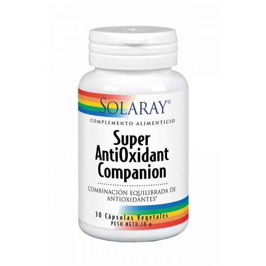 Solaray Super Antioxidant Companion ofrece una amplia gama de antioxidantes naturales, incluidos conseguidos y herbales, y una combinación perfecta de vitamina A, C y E. Esto permite ofrecer una solución completa a las necesidades diarias de antioxidantes, y contribuye a prevenir la oxidación celular causada por los radicales libres. La fórmula está diseñada para proporcionar una fuente saludable y segura de antioxidantes que pueda ser consumida cada día, para obtener los máximos beneficios de los necesarios para la salud y el bienestar.