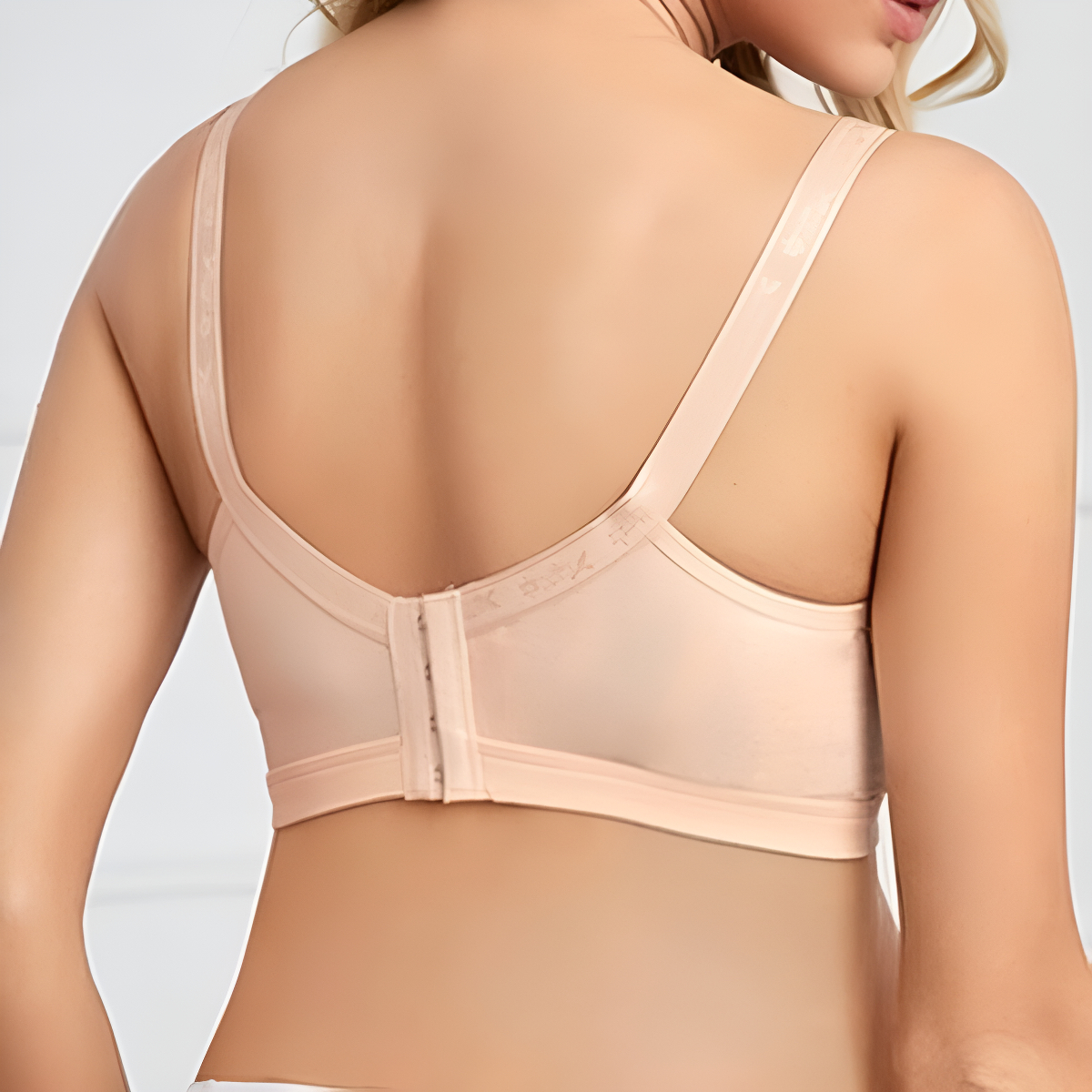 Fabricado en tela elástica y respirable, sin aro, ofrece una sensación cómoda durante todo el día. Las copas removibles y los clips frontales permiten abrir y cerrar fácilmente con una sola mano.