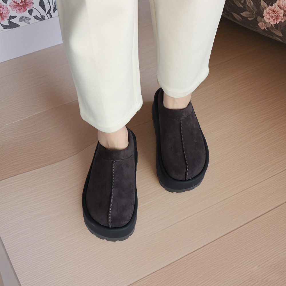 Disfrutá del máximo confort con estos suecos de plataforma, ideales para mantener tus pies abrigados en los días fríos. Su interior forrado brinda una sensación suave y cálida, mientras que el exterior con detalles cosidos les da un toque de estilo único. Fáciles de calzar, cómodos y con suela antideslizante, son perfectos para estar en casa o salir con look relajado.