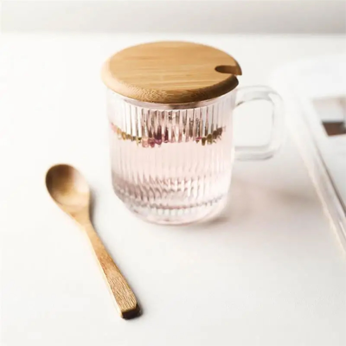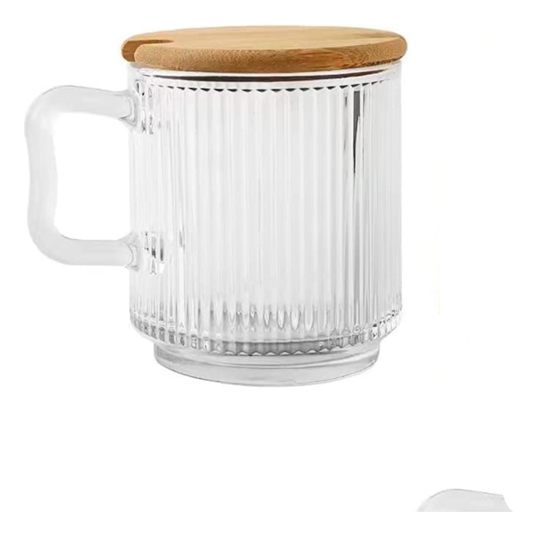 Taza Mango De Vidrio Con Tapa Bambo Diseño Elegante Té Café