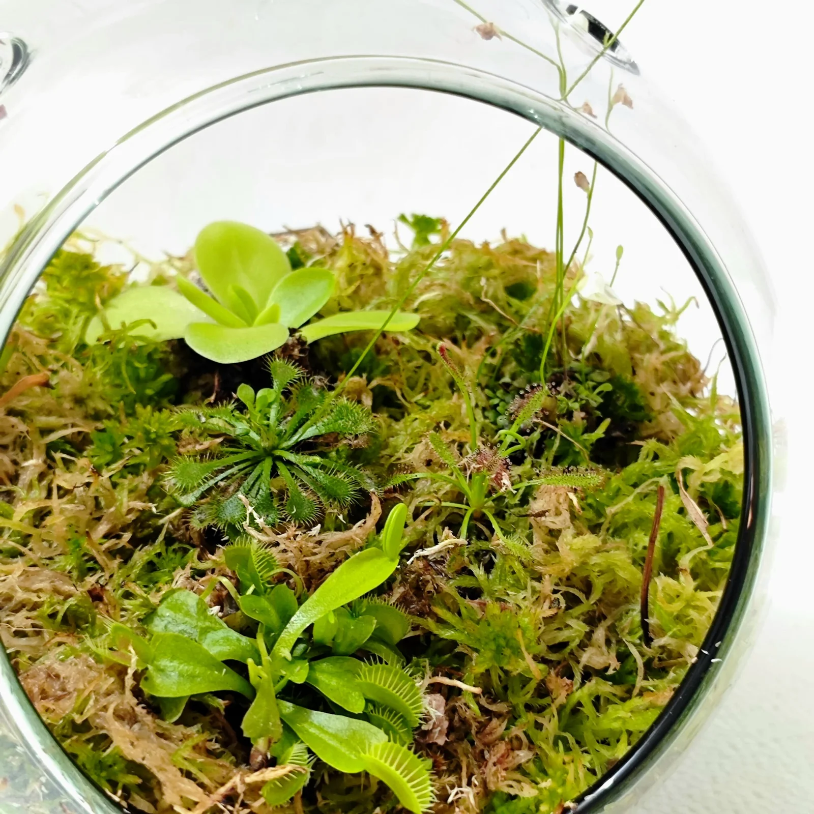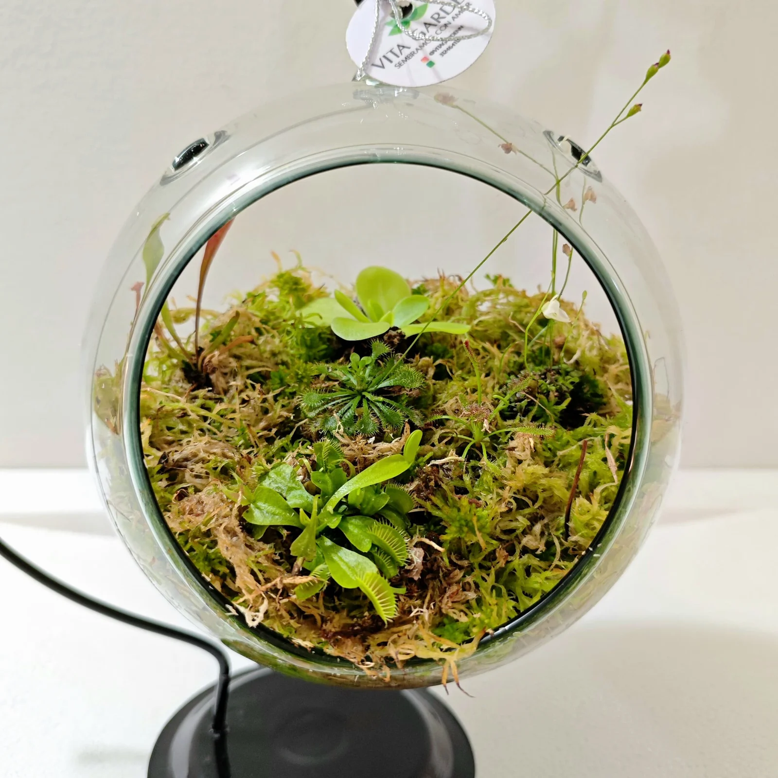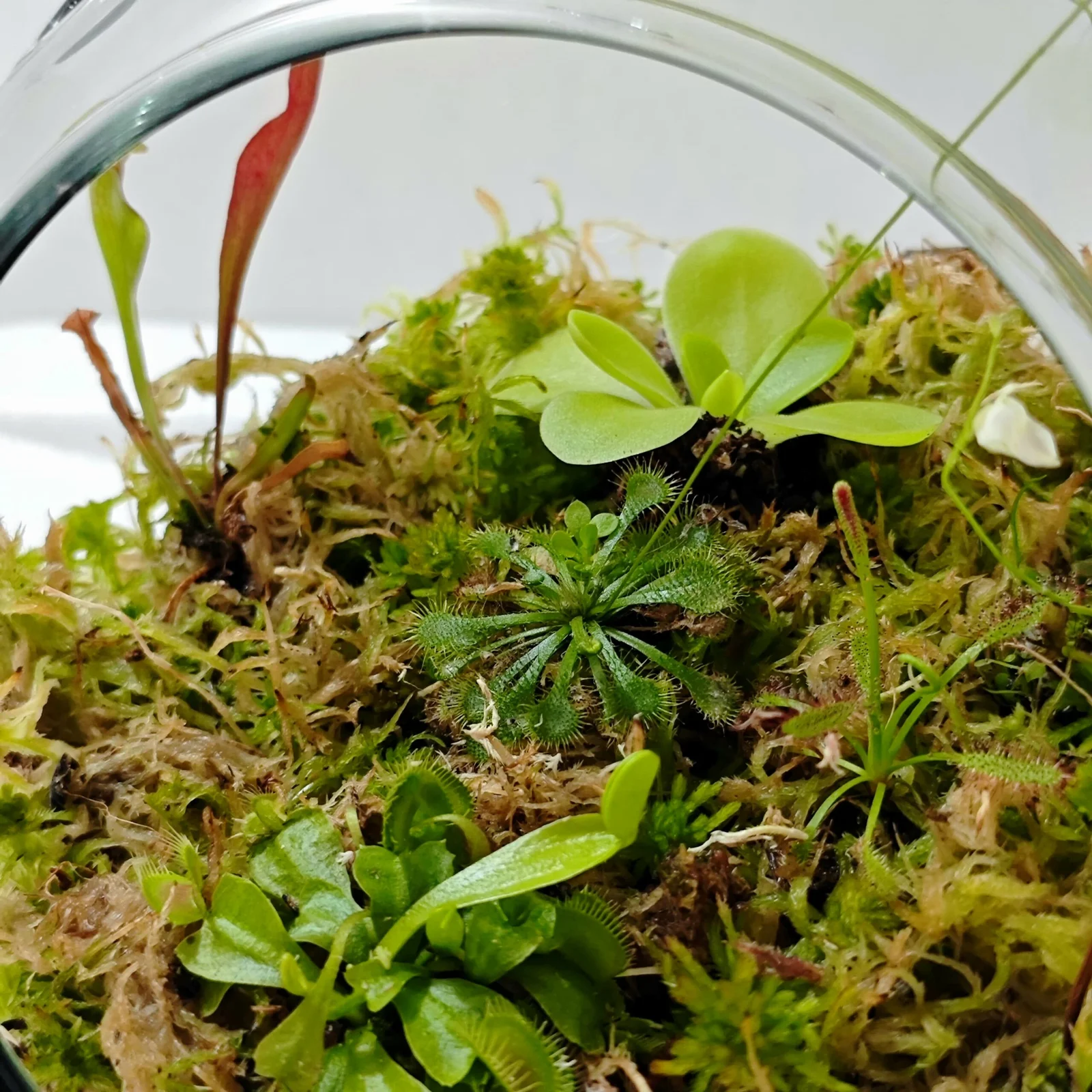 Este terrario incluye 5 especies diferentes de plantas, entre las que se encuentra