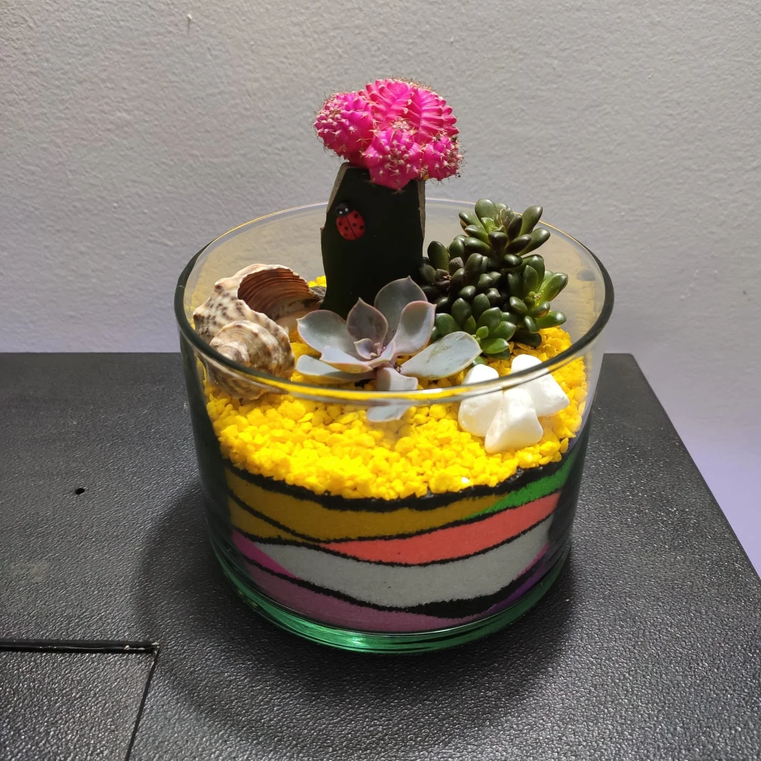 Terrario cilíndrico de cactus