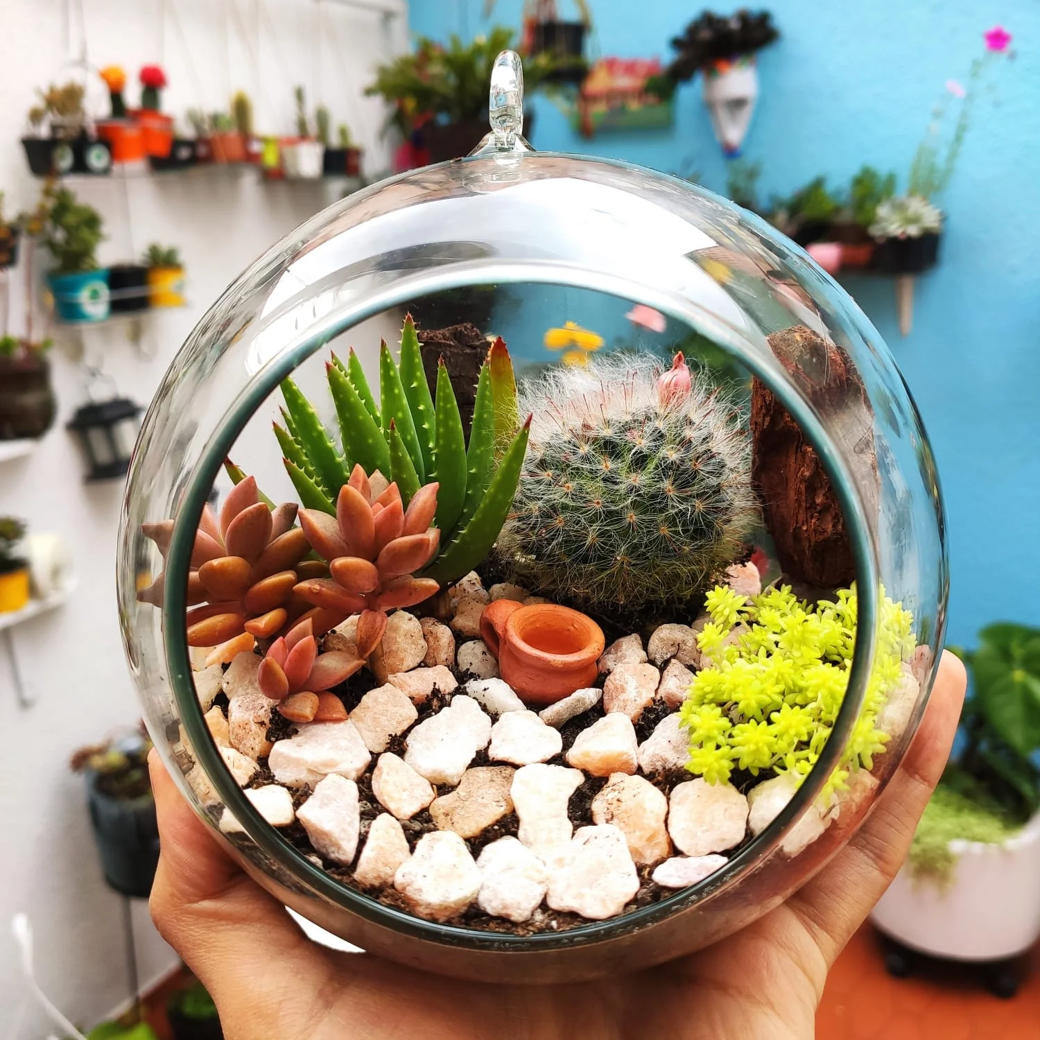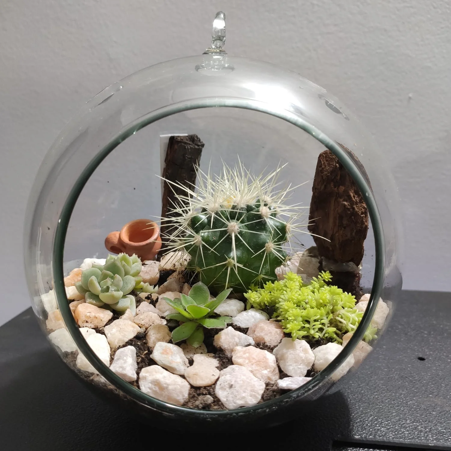 Terrario Suculentas y Cactus en Burbuja de Cristal Grande