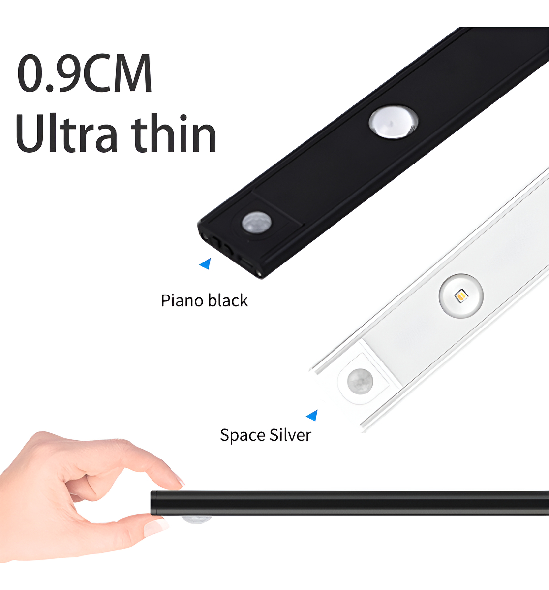 – Perfil delgado: espesor aprox. 9 mm para quedar oculta bajo muebles.