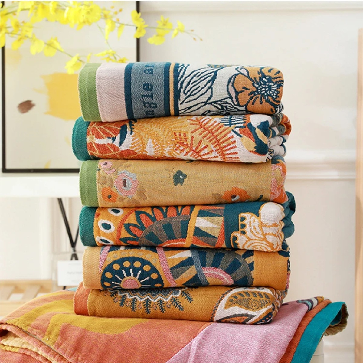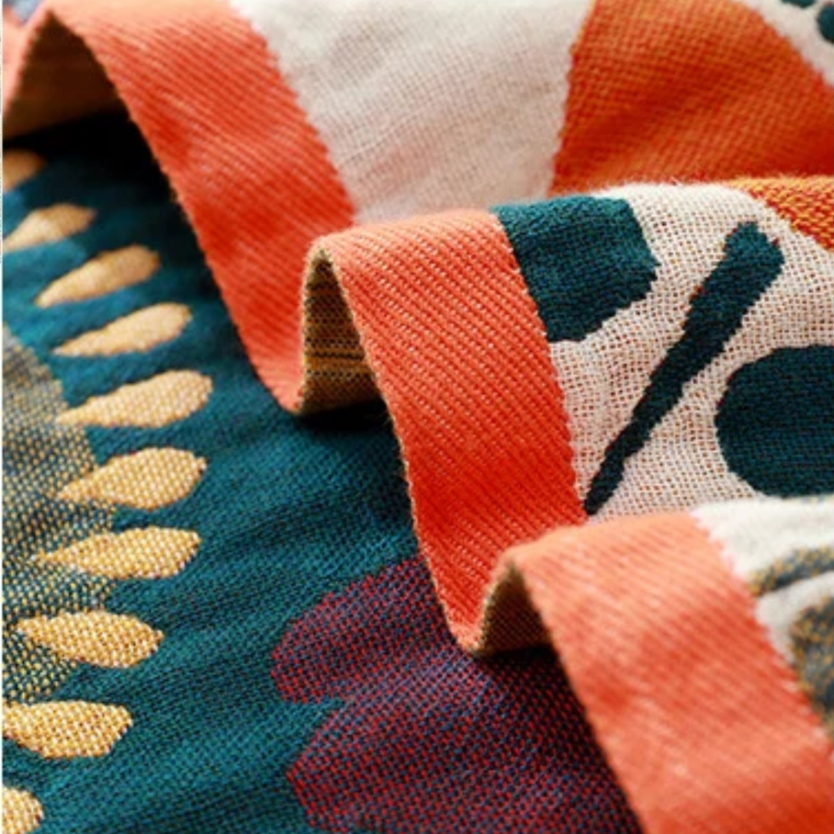 Su tejido abierto estilo gasa le permite ventilar rápidamente para un secado adecuado, además su diseño y estética permite utilizarla como throw blanket ideal para sillones y reposeras.