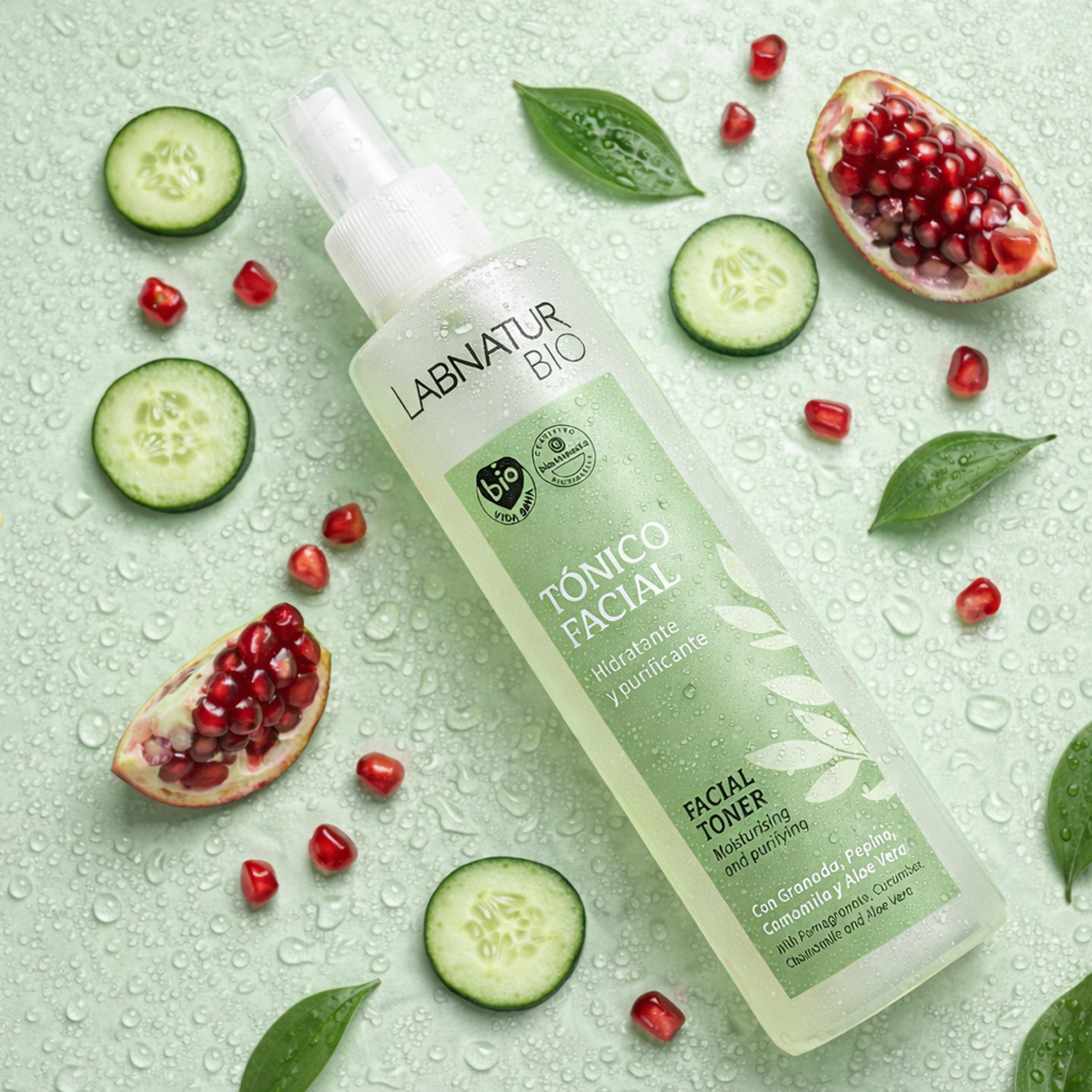 Nuestro Tónico Facial de Labnatur Bio es perfecto si quieres cuidar tu piel de forma eficaz, natural y respetuosa. Su fórmula suave y equilibrante, con Granada, Pepino, Camomila, Aloe Vera y Pantenol, hidrata, purifica y revitaliza la piel, dejándola fresca, tonificada y preparada para recibir los tratamientos posteriores.