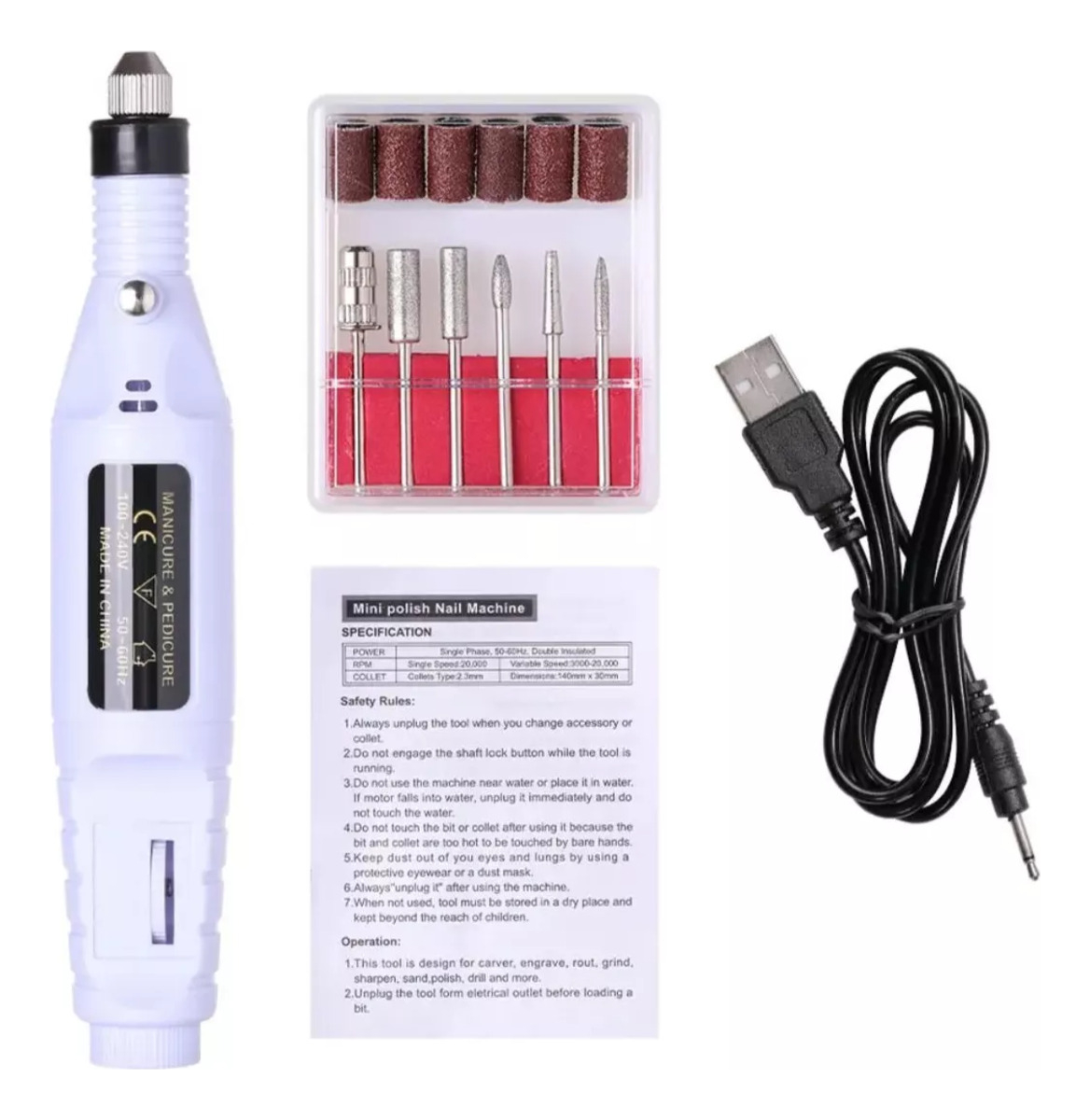 Torno Drill Electrico Manicura Uñas + Kit De Fresas