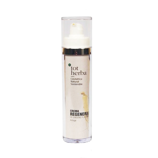 Crema regeneradora de ginseng y jalea real antiedad. Con filtro solar. Detiende el envejecimiento prematuro de la piel. Retrasa y combate la aparición de arrugas, estimulando la regeneración de las células de la piel.