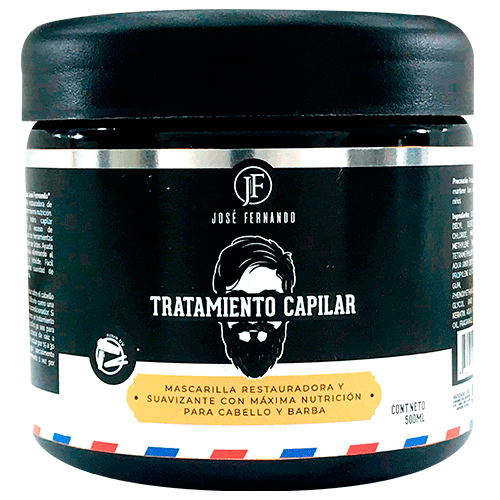 Tratamiento Capilar José Fernando, es una mascarilla reparadora para cabellos opacos. Reestructura la hebra maltratada del cabello y la barba, otorgando máxima suavidad de manera instantánea desde la raíz hasta las puntas.