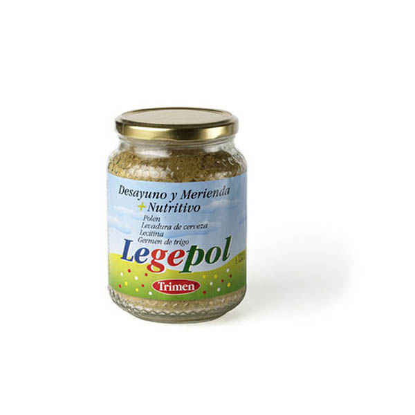Legepol Polvo 375Gr Trimen es un suplemento nutricional que incluye levadura de cerveza, germen de trigo, polen y lecitina de soja. Estos ingredientes aportan al organismo proteínas de alto valor biológico, glúcidos, minerales y vitaminas esenciales. La levadura de cerveza favorece la desintoxicación y depuración de la piel, por lo que se recomienda su consumo para tratar acné y realizar curas depurativas. El germen de trigo es un alimento rico en proteínas, grasas, aminoácidos, minerales y vitaminas, siendo la vitamina E uno de los componentes con una concentración mayor. Se considera como un poderoso antioxidante que protege a las células del envejecimiento prematuro. Además, el germen de trigo es una de las principales fuentes de ácido fólico.