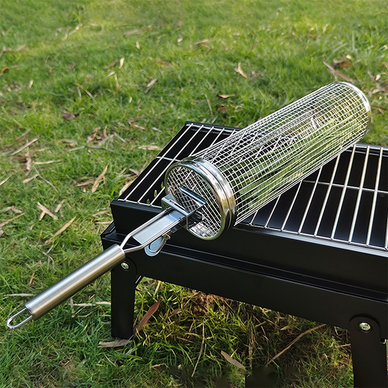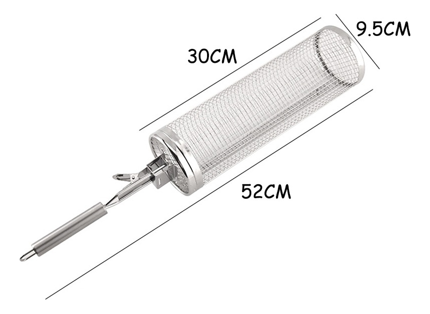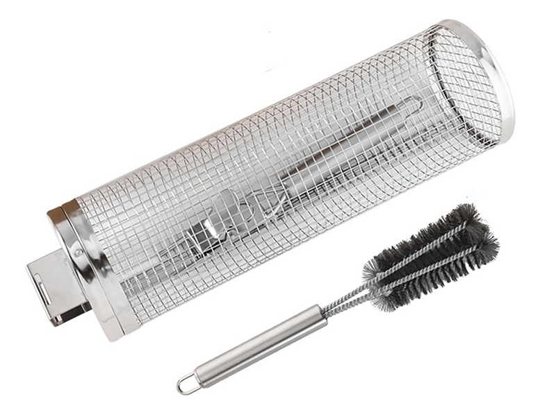 Tubo canasta para asar verduras. Facilita dar vuelta las verduras a la hora de ponerlas arriba de la parrilla. Viene con un cepillo para lavarlo después de usarlo.