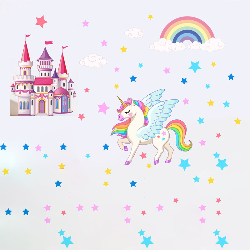 Vinilo Adhesivo Unicornio Magico Castillo Arcoiris Estrellas