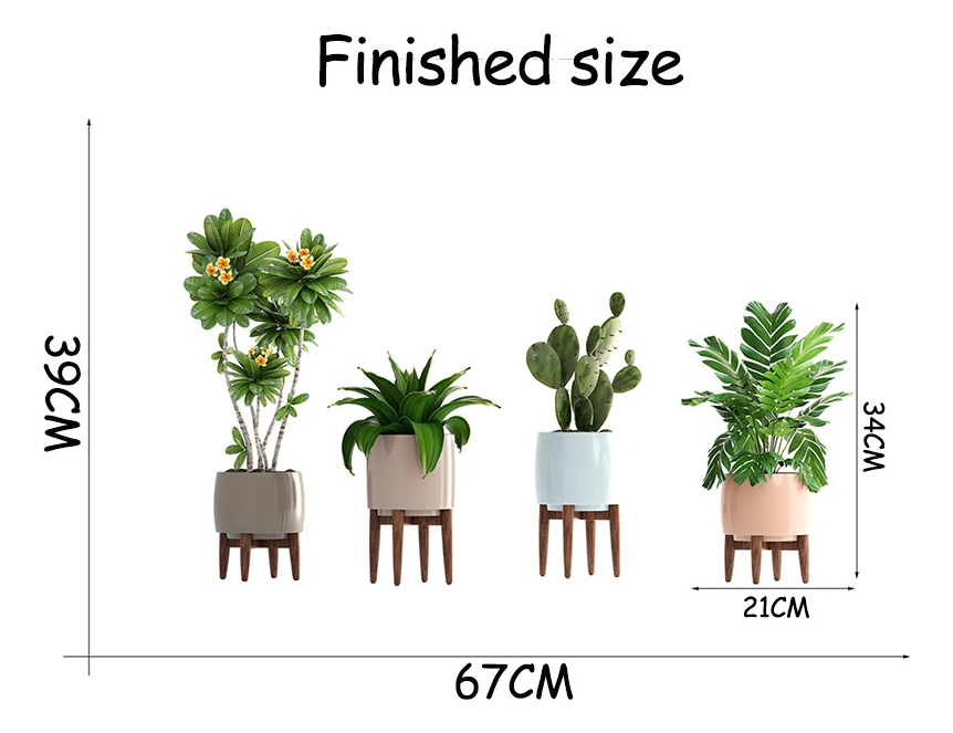 Cada maceta: 21 cm de ancho x 34 cm de alto