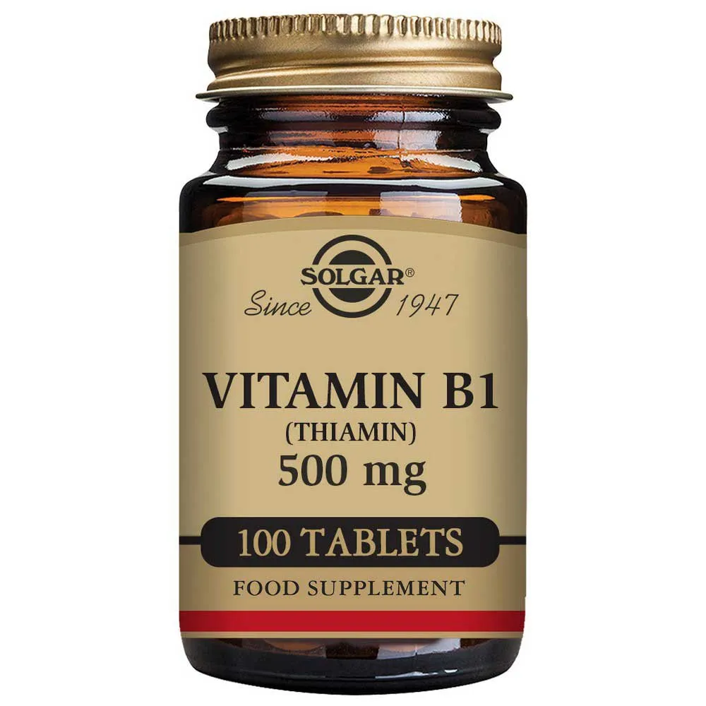 Solgar Vitamina B1 (Tiamina) 500 mg aporta vitamina B1, también denominada tiamina, en forma de comprimidos. La vitamina B1 es una vitamina fundamental del grupo B y participa en el metabolismo ayudando al organismo a convertir el alimento en energía.