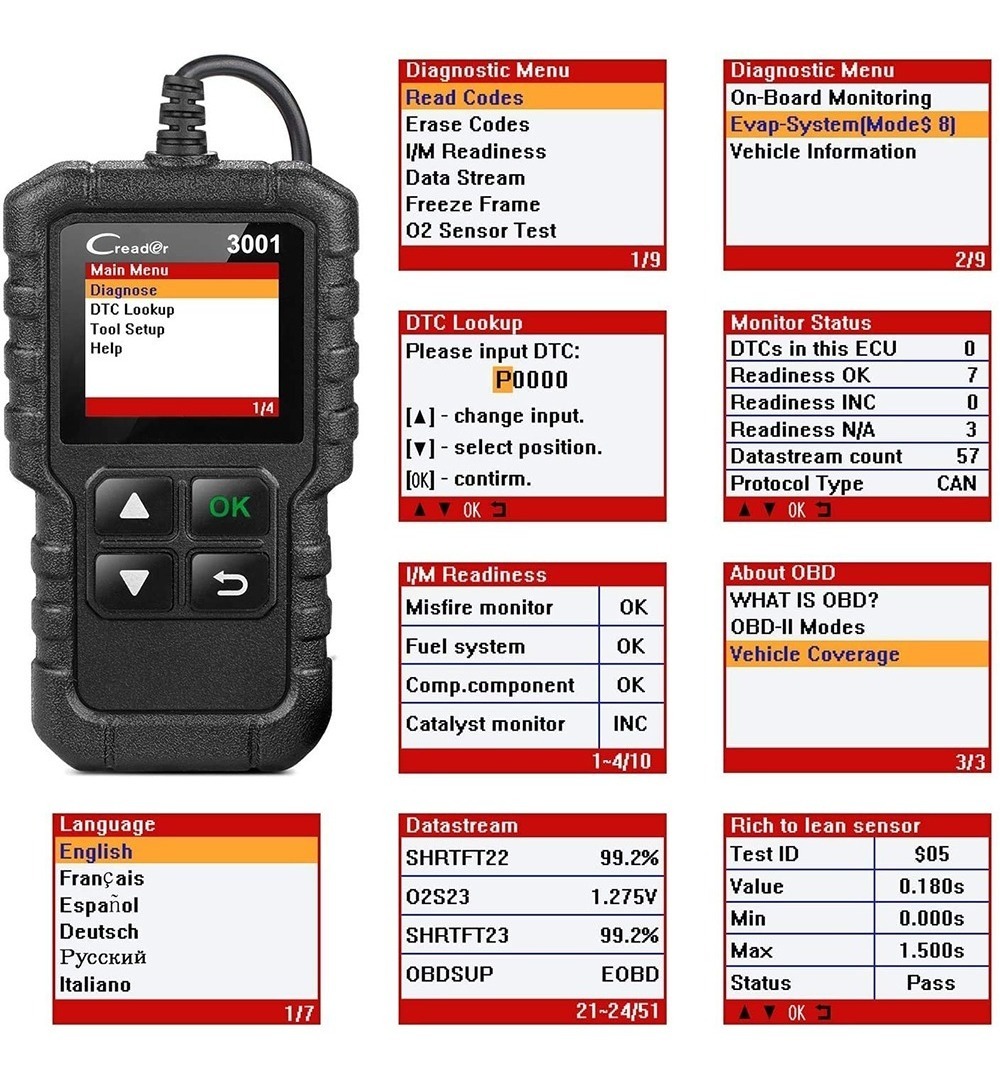 Coches Japoneses/Coreanos: Compatible con coches estándar OBD2 desde 2008 hasta ahora: Honda, Acura, Toyota, Scion, Lexus, Mazda, Nissan, Infiniti, Isuzu, Daihatsu, Mitsubishi, Subaru, Samsung, Daewoo, Hyundai , Kia, etc.